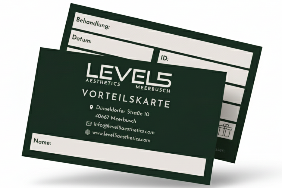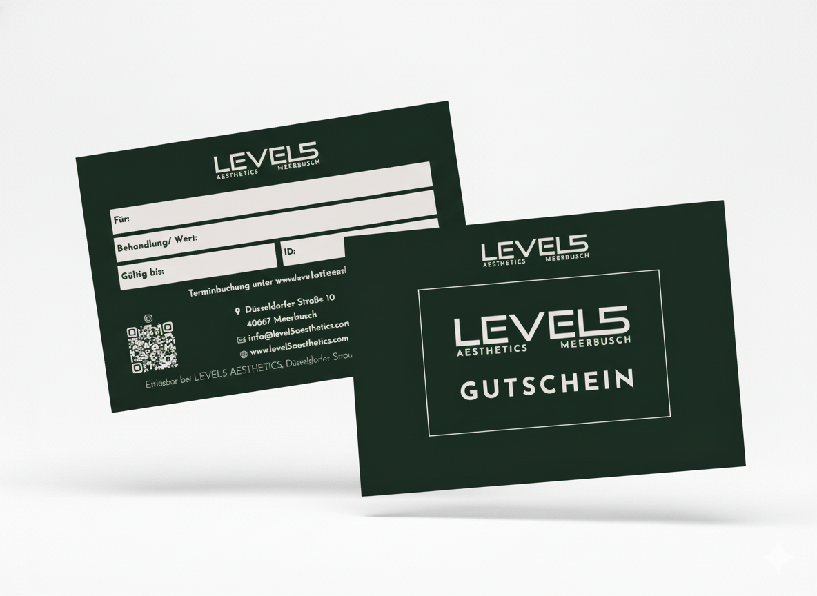 Unsere LEVEL5 AESTHETICS Geschenkgutscheine sind das perfekte Präsent für besondere Anlässe. Diese können für einen gewünschten Betrag, eine Prozedur oder eine Behandlungsserie ausgestellt und verschenkt werden.